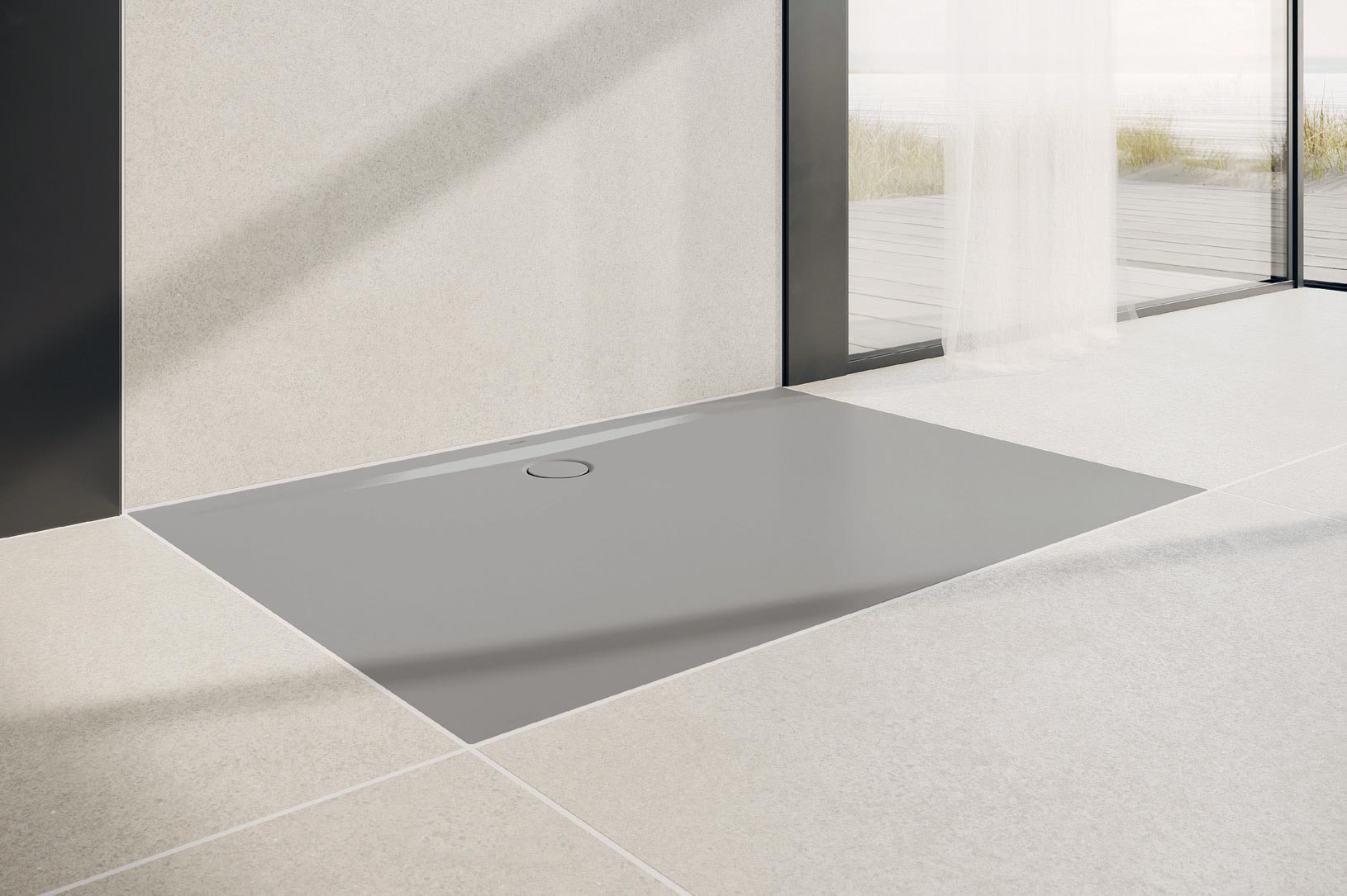 Superplan Zero ist ein Produktname mit Hintergrund: Kaldewei hat seinen Duschboden konsequent am Kundenwunsch ausgerichtet und diesen in ein neues Produkt übersetzt. Bodeneben eingebaut wird die Duschfläche zum Badezimmerboden und erlaubt, aufgrund seiner sehr schmalen Kanten, ein direktes Anfliesen mit fast unsichtbaren Fugen. Der Ablauf ist so nah an die Wand platziert, dass bequemes Stehen und sicheres Bewegen auf der Superplan Zero garantiert sind. Der neue Duschboden zeichnet sich durch die elegante und präzise Linienführung aus und ist von drei Seiten schwellenfrei begehbar.
