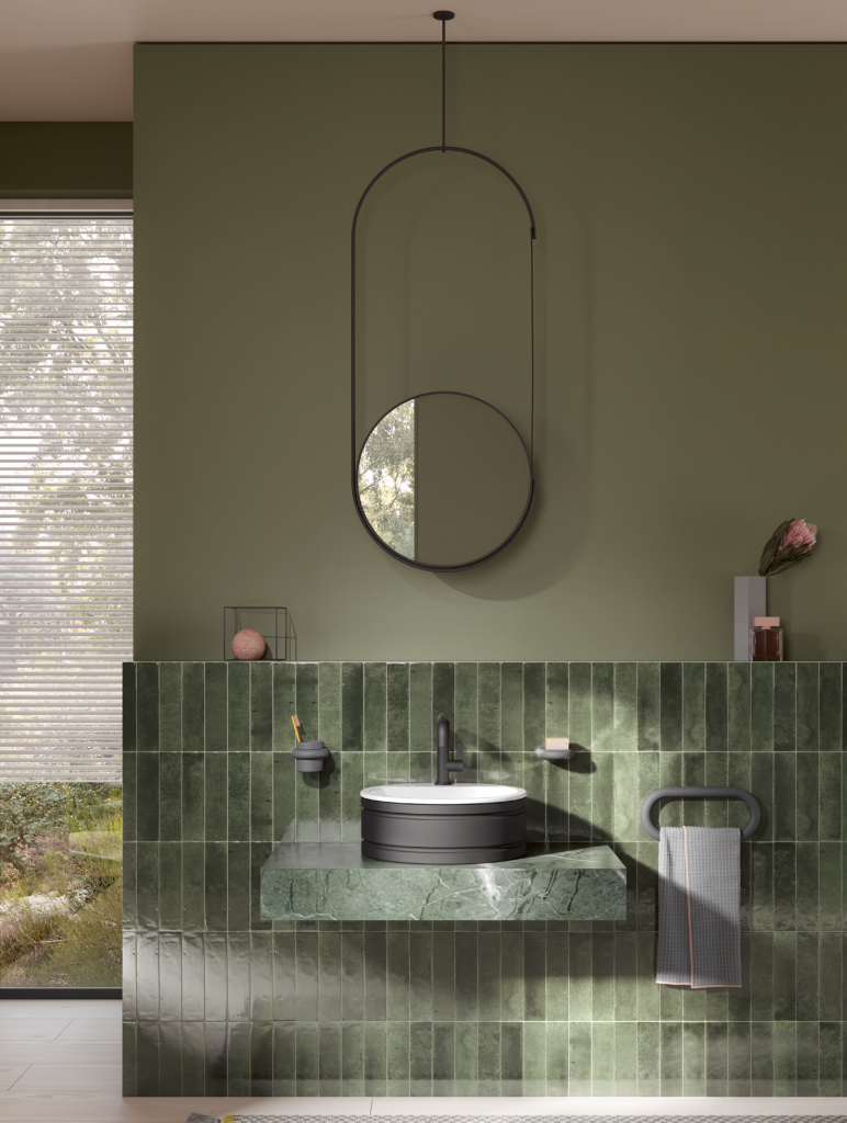 Mit DUO stellt HEWI erstmals einen Aufsatzwaschtisch vor und erweitert das Sortiment um eine Lösung, die aktuelle Badtrends aufgreift und gezielt mit Farbe sowie Oberfläche spielt. Als konsequente Ergänzung zu unterfahrbaren Modellen, modularen Waschtischen, kompakten Varianten für das kleine Gästebad sowie längenvariablen Ausführungen lässt sich DUO flexibel auf Konsolen oder Möbelunterschränken platzieren und schafft so neue Freiräume in der Badarchitektur.